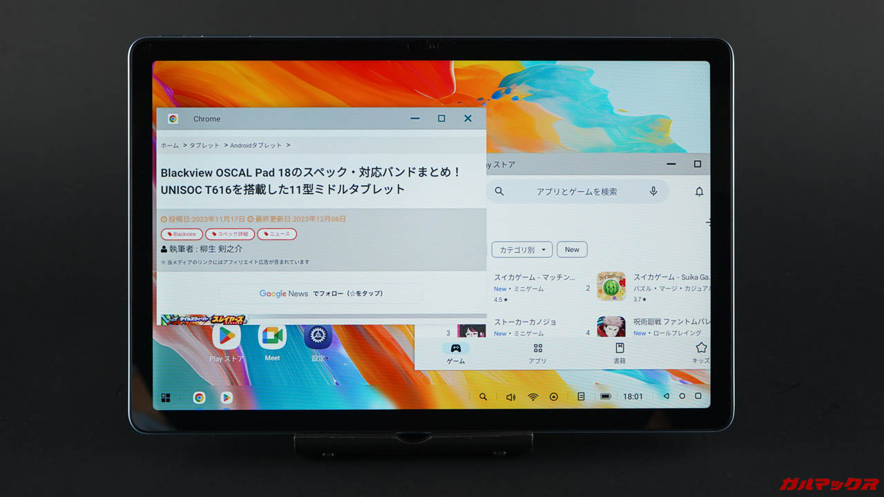 PCモードはぼちぼちパワーを使うのでSoCがショボいと動作がモッサリすることも多いんですが、OSCAL Pad 18は思ってたよりも軽快に動く…!