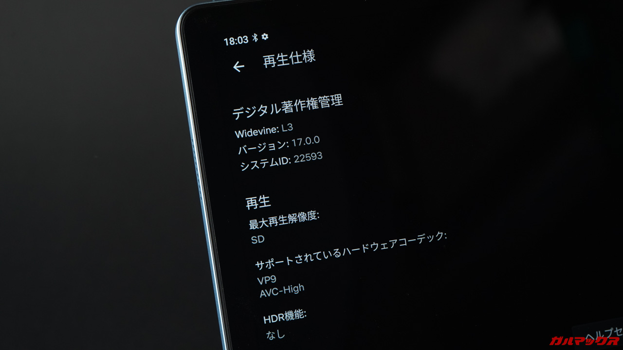 AmazonプライムビデオやNetflixなど著作権コンテンツはWidevineが対応するレベルによって高画質で再生できるか否かが変わってくるんですが、OSCAL Pad 18は高画質で再生できるWidevine L1に対応!