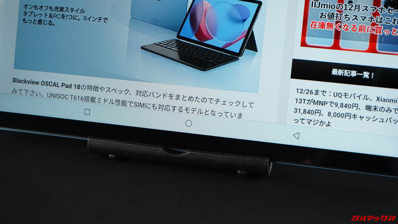 ディスプレイを見ると長辺にインカメラが備わっているので、OSCAL Pad 18は横持ちに最適化されている感じね!