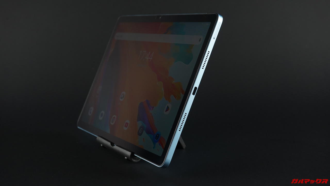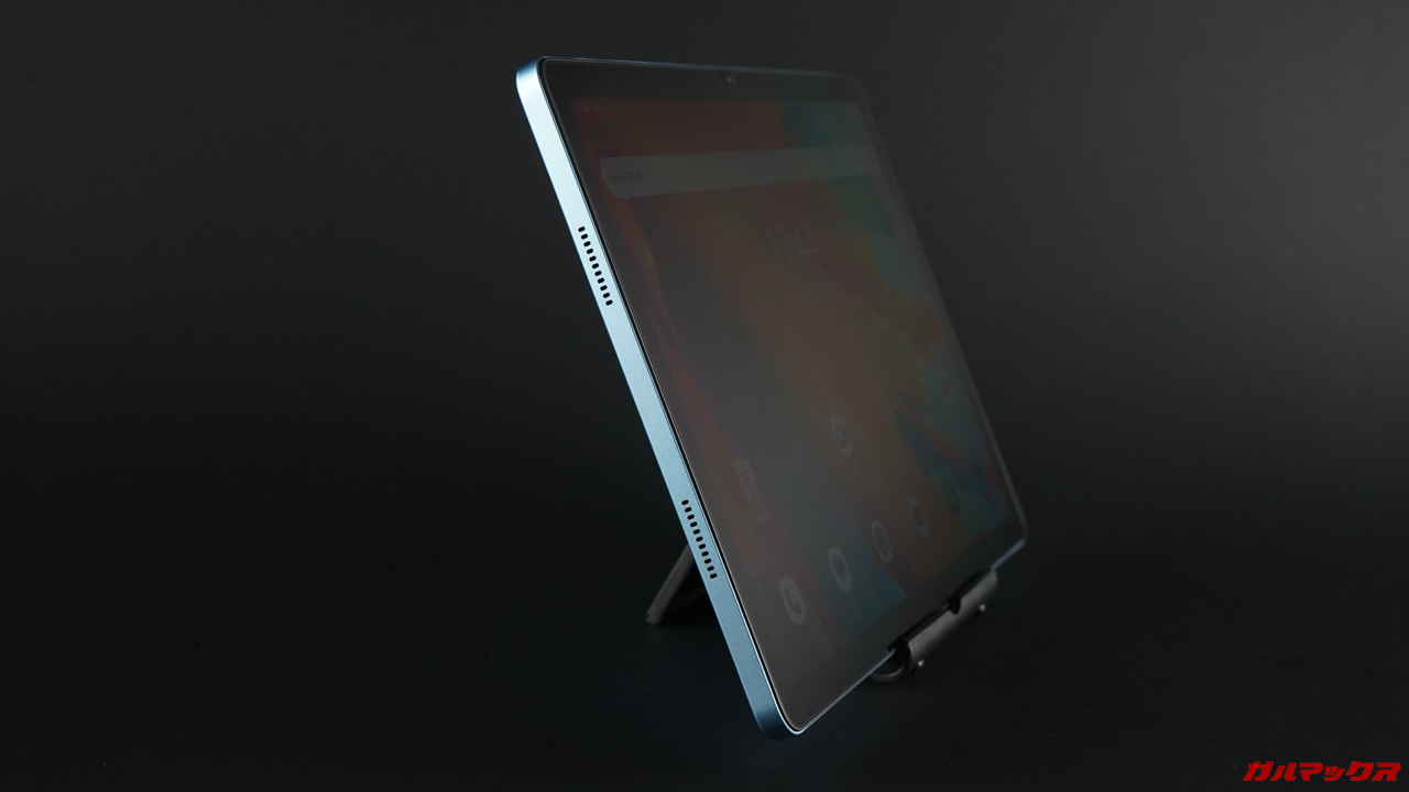 まあ安価なタブレットでこの仕様は標準的なのでデメリットというほどでも無いんですけど、せっかく4つのスピーカーを備えているなら縦でも横でもステレオで再生できるようにして欲しかった!