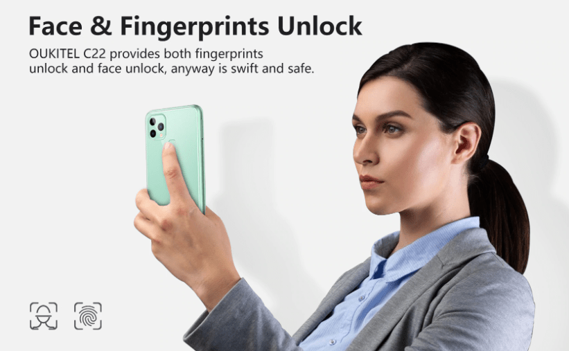 ▼このOUKITEL C22は背面に指紋センサーを搭載したことで指紋によるロック解除、さらに顔認証にも対応しているのがGoodです!オマージュ元のiPhone 11 Proにはない使い勝手の良い部分でしょう。あっちも指紋センサー復活してくれないかな↓