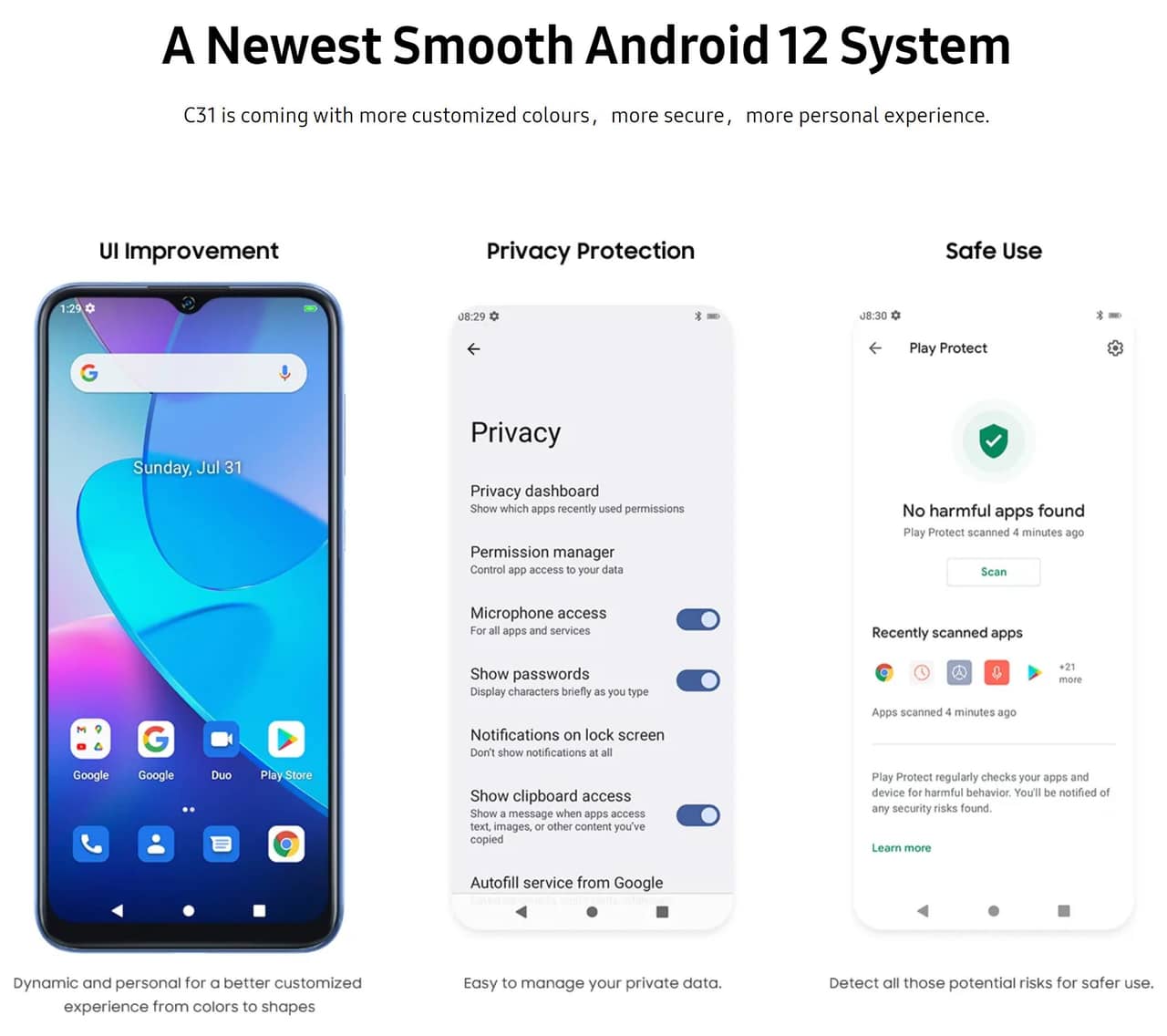 ▼またエントリーモデルながらAndroid 12も対応している現時点では珍しいモデルともいえます。個人的にはこの低スペックだと軽量版のGo Editionを積んでほしいのが本音ですが…↓