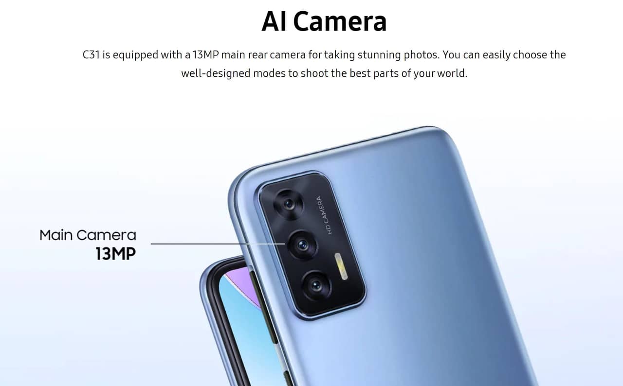 ▼カメラはトリプルカメラですが、サブカメラ2つは30万画素の補助カメラとなっています。メインカメラは1,300万画素で、AIにも対応しているとのこと。この性能帯でAI対応はなかなか珍しいと思うんす。↓
