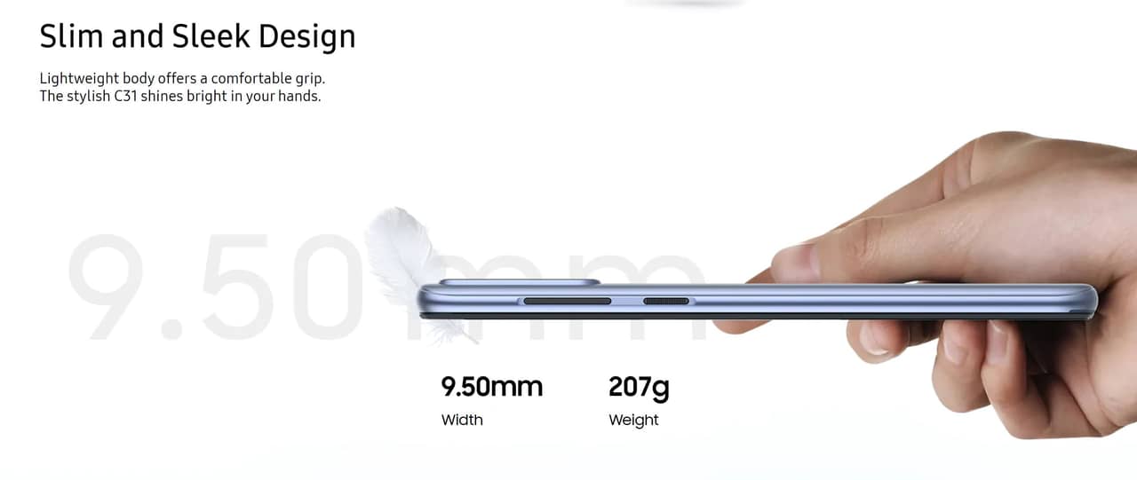 ▼OUKITEL C31はスリムなデザインとはありますが、厚みは9.5mmと分厚く、あと重さも207gと重量級。どこらへんがスリムなのかさっぱりわからん。OUKITELではタフネススマホも出ているのでそれらの比較なのかも。↓