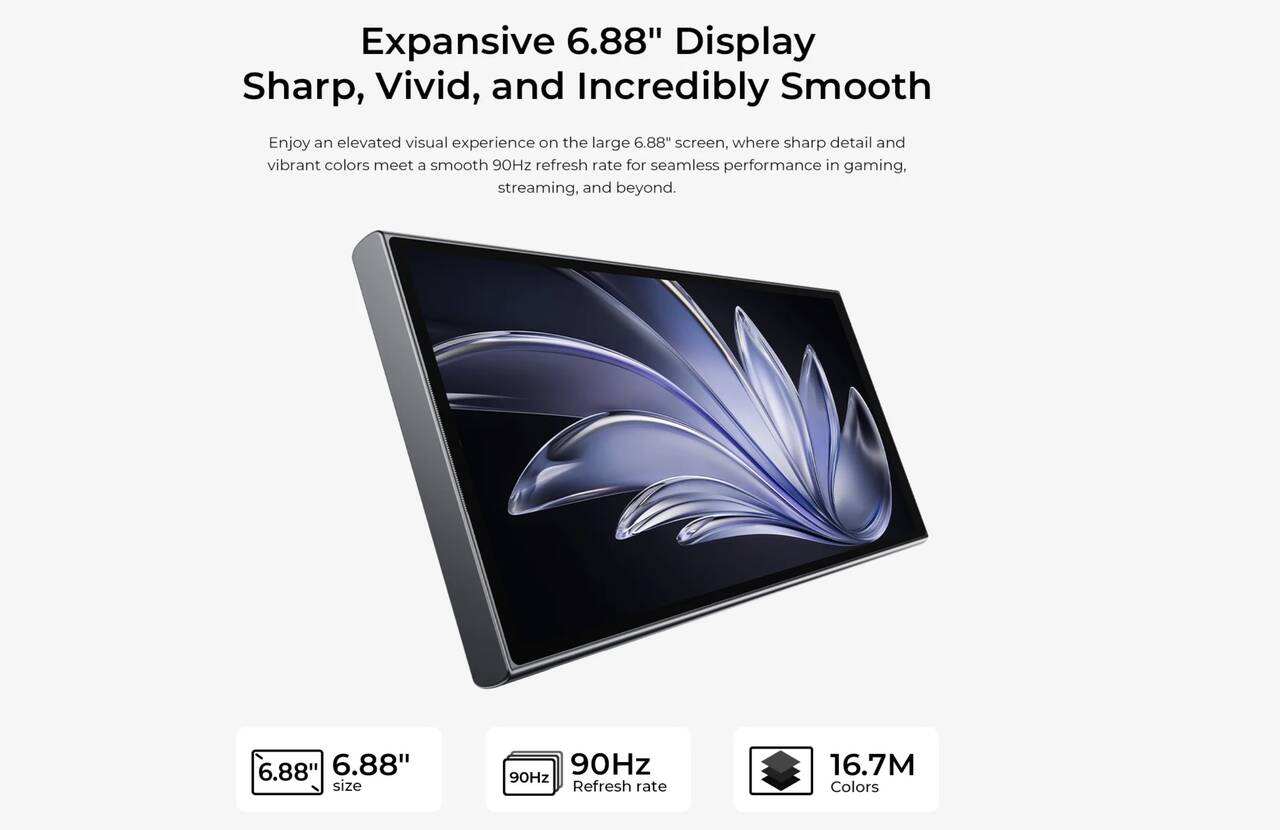 ディスプレイのサイズはなんと6.88型。もはやファブレットなサイズ感。いっちょまえに90Hz表示にも対応しています。