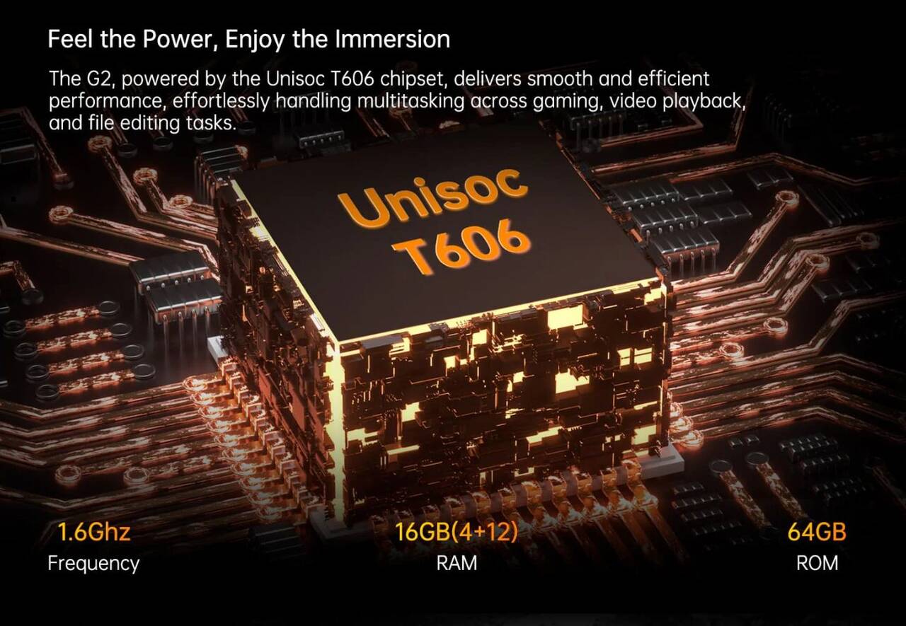 OUKITEL G2のSoCは安価なスマホに搭載されることの多いUnisoc T606。メール、電話、SNSといった使い方に向いているスペック。