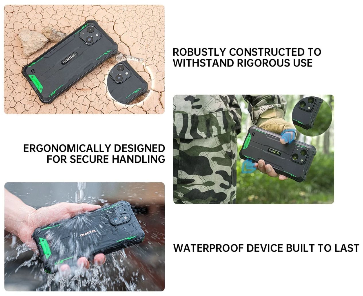 ▼タフネスモデルだけあり防水防塵等級はIP69Kと非常に頑丈で水没してもへっちゃら。過酷な気温で使っても、硬い地面に落としても壊れにくく、一般的なスマホと比べて圧倒的な耐久性が魅力ですよ!↓