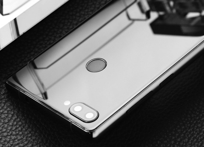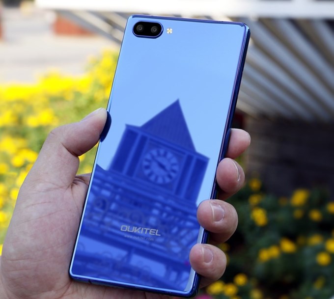 OUKITEL MIX 2の背面はガラスで鏡のようです