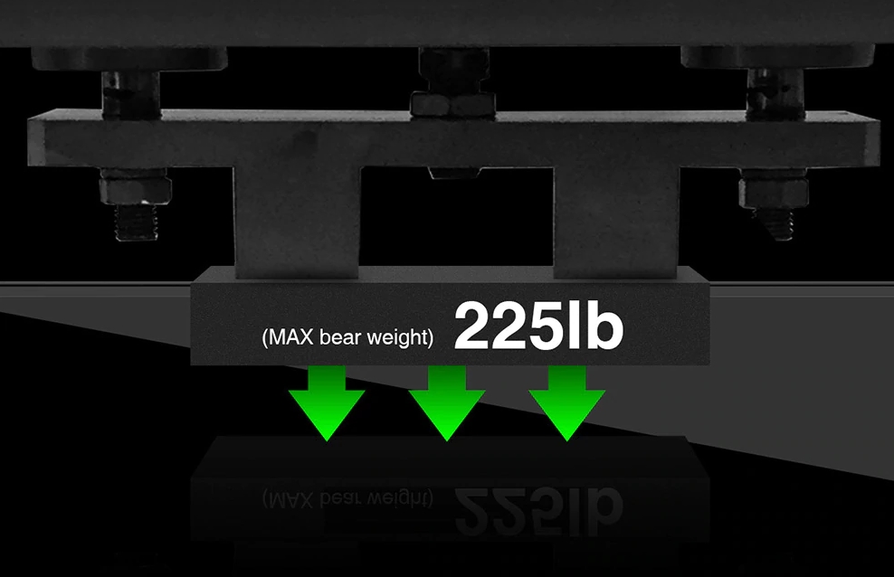 ▼耐衝撃性能も凄い!瞬発的な衝撃だけでなく最大225lb=約102Kgの圧力に5分間も耐えられる仕様。↓