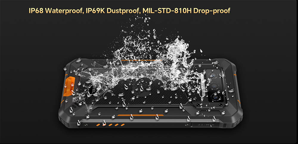 ▼IP68、IP69Kの防水防塵とMIL-STD 810Hに対応。水、熱、汚れ、衝撃などに高い耐久性があります。↓