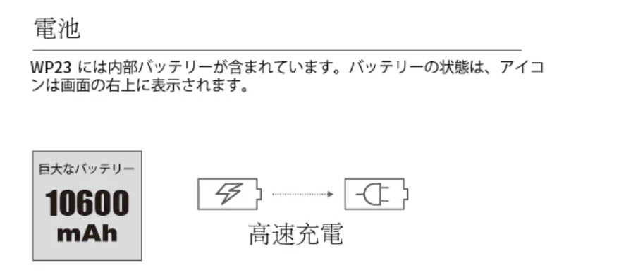 ▼充電速度は非公表ですが、マニュアルには高速充電と記載されていました。急速充電を名乗っていないということはおそらくですが、18W未満かと。10000mAhクラスなら最低でも33Wはほしいところです。↓