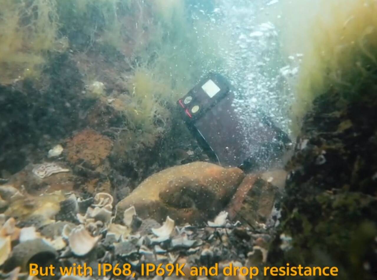 ▼IP68の完全防水設計。水没してもヘッチャラなのはもちろん、MIL-STD-810H等級持ちで落としても壊れにくい頑丈さも魅力。ただしIP69Kというお湯への耐性はないようなのでその点は注意。後述しますが設計上仕方ないことなのかもしれん。↓