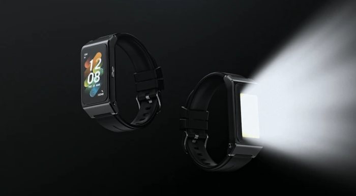 ▼もう1つの大型ライトは同じくスマートウォッチのバンドに取り付けられるので、腕に巻ける懐中電灯としても使えます。もちろんOUKITEL WP300に取り付けて光らせるも良し。↓