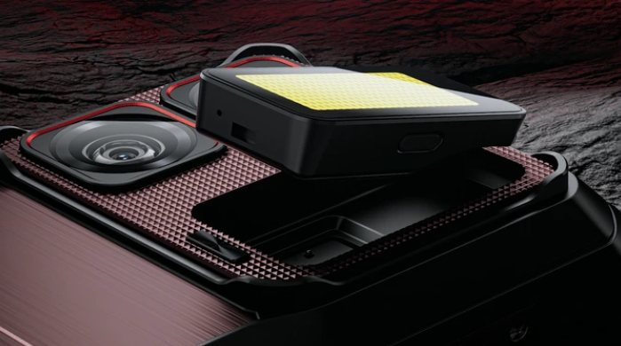 OUKITEL WP300一番の特徴はカメラ横の部分がパカっと取れること!ここに大型ライトあるいはワイヤレスイヤホンウォッチを取り付けられます。