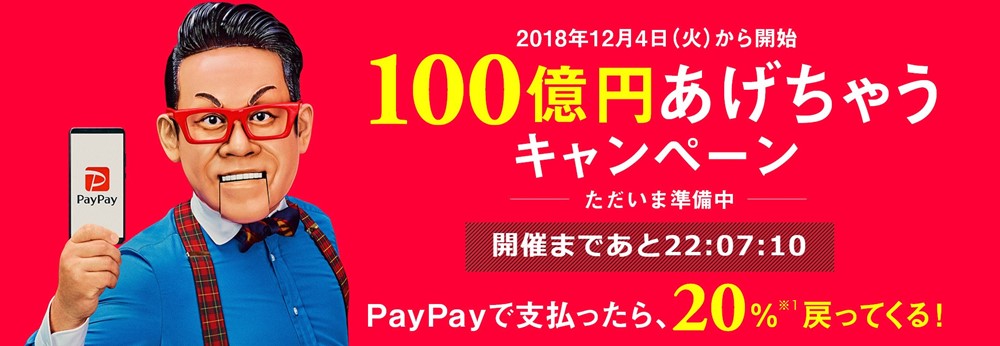 12月4日から開始!スマホ決済「PayPay」で20%還元キャンペーンがスタート!