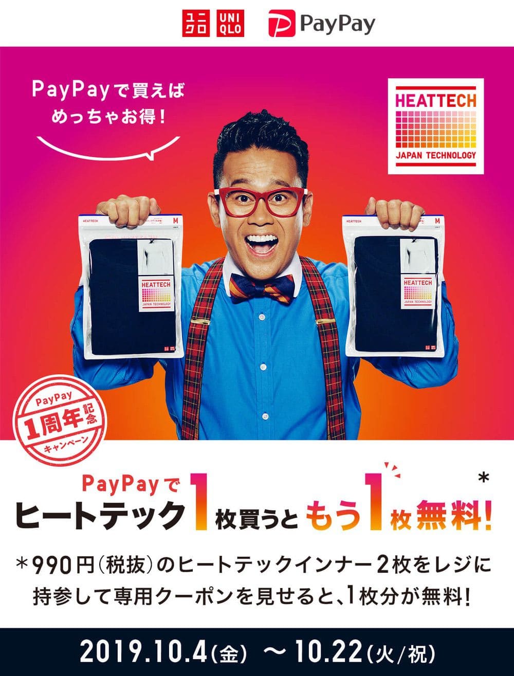 ヒートテックはサイズによっては品薄が予想されるので、早めにユニクロへ走りましょう! 10月5日の「PayPay感謝デー」で話題になっているPayPayですが、ほ … 続きを読む [お得キャンペーン]PayPay決済でユニクロのヒートテックもう1枚プレゼント&タクシー半額!