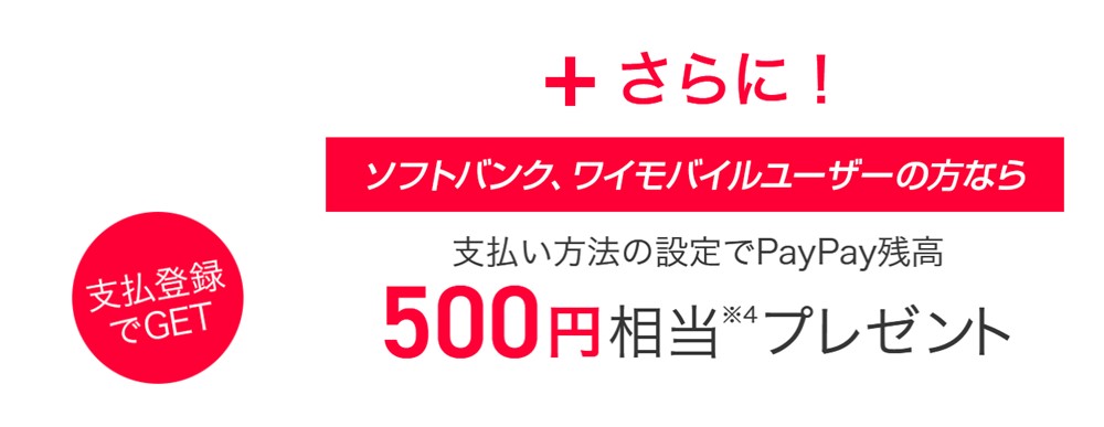 さらにソフトバンク、ワイモバイルユーザーなら500円相当プレゼント