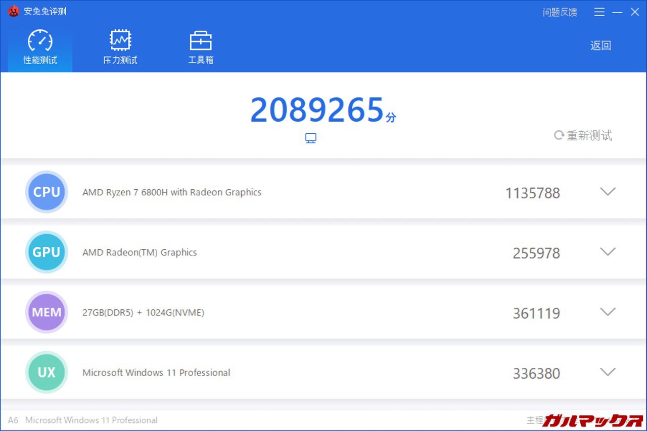 ACEMAGIC AX16 Pro AnTuTuベンチマーク