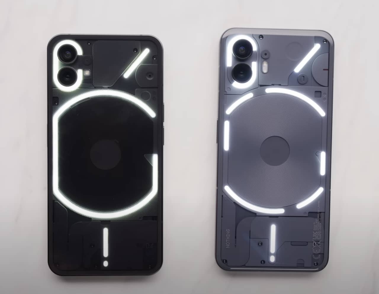 ▼上記のTwitterが出たタイミングでMarques Brownlee氏が動画を公開していたんですが、右:Nothing Phone (1)と左:Nothing Phone (2)を比較してました。↓