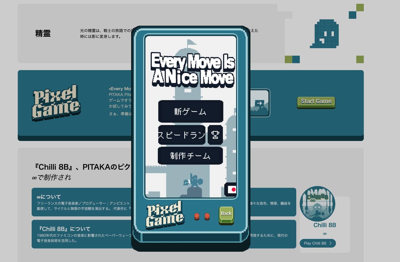 こんな想いがカタチとなり登場したのがPixel Gameってわけですね。粋なのが、「童心に戻ってたまにはゲームを楽しもうぜ」と実際にオリジナルのレトロゲームを作っているところ。