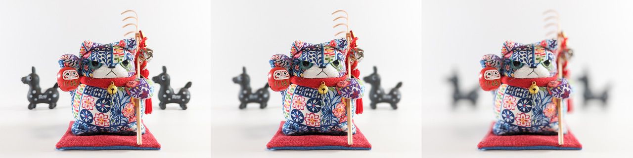 ▼左がボケ味最小、中がボケ味デフォルト、右がボケ味最大。↓