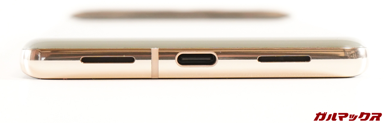 ▼下部はスピーカーとUSB-Cを搭載。ちなみにスピーカーは上部の受話口を用いてステレオ仕様になってます。↓