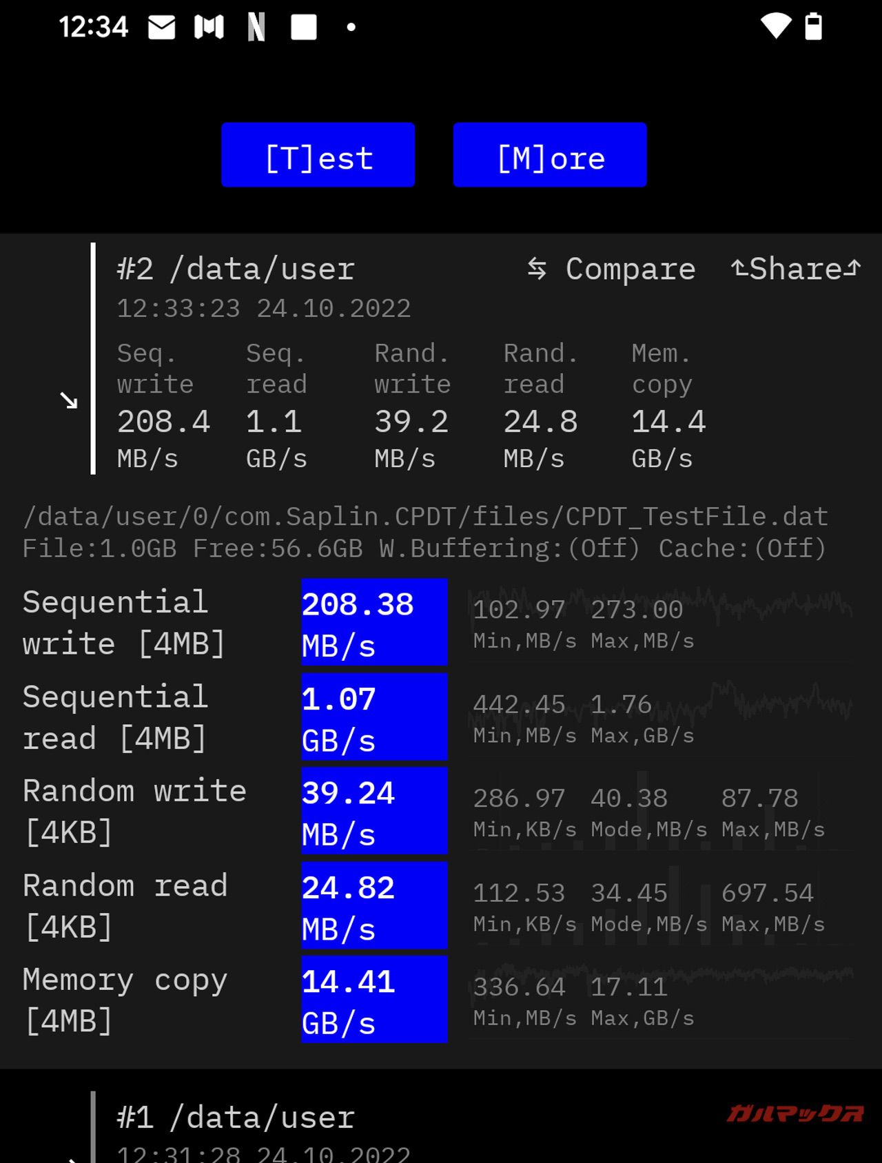 Pixel 7 ProSoCにTensor G2を搭載していてレビュー機はメモリ12GB+容量128GBです。他にメモリ12GB+容量256GBも選ぶことができます。