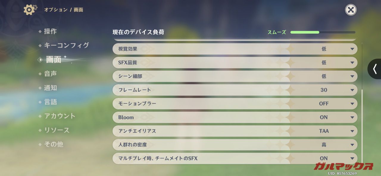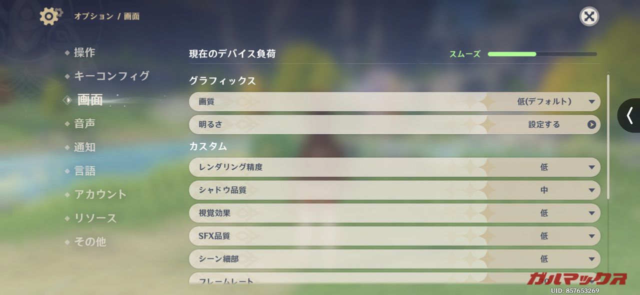 ▼デフォルト(低)設定/60FPSで元素爆発時の最低FPSは39でした。数値はあくまで目安なので実際の滑らかさ・カクつき・読み込み速度は動画を見てみて下さい。↓↓
