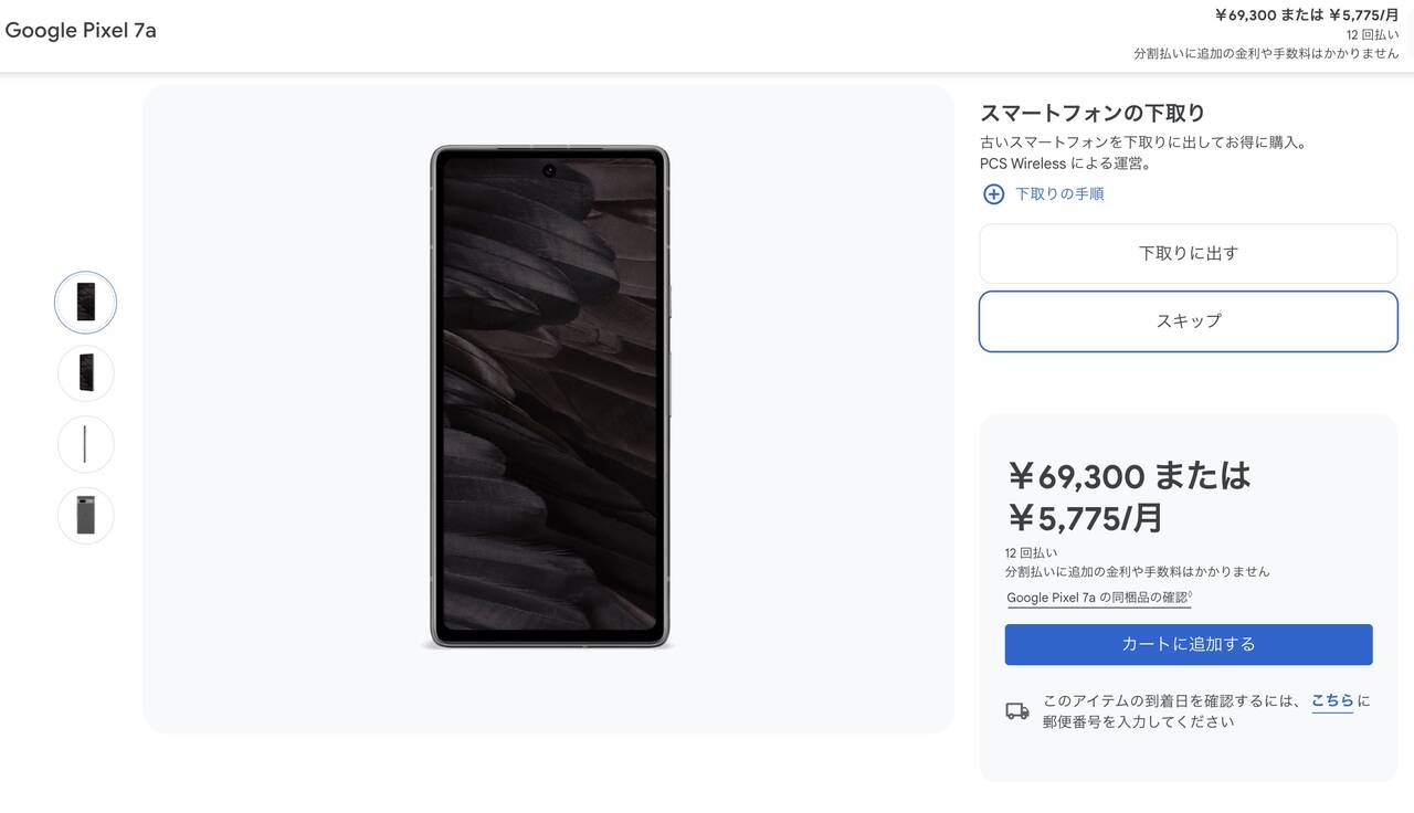 ▼ちなみに執筆時点でPixel 7aはGoogleストアにて69,300円の品。↓