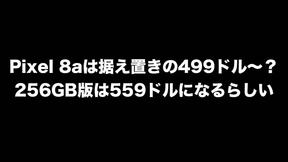 2024年5月に発表される予定のPixel 8aの価格は128GB版が据え置きの499ドル、Pixel 7aには無かった256GB版は559ドルになるとsmartprixで報じられてました。