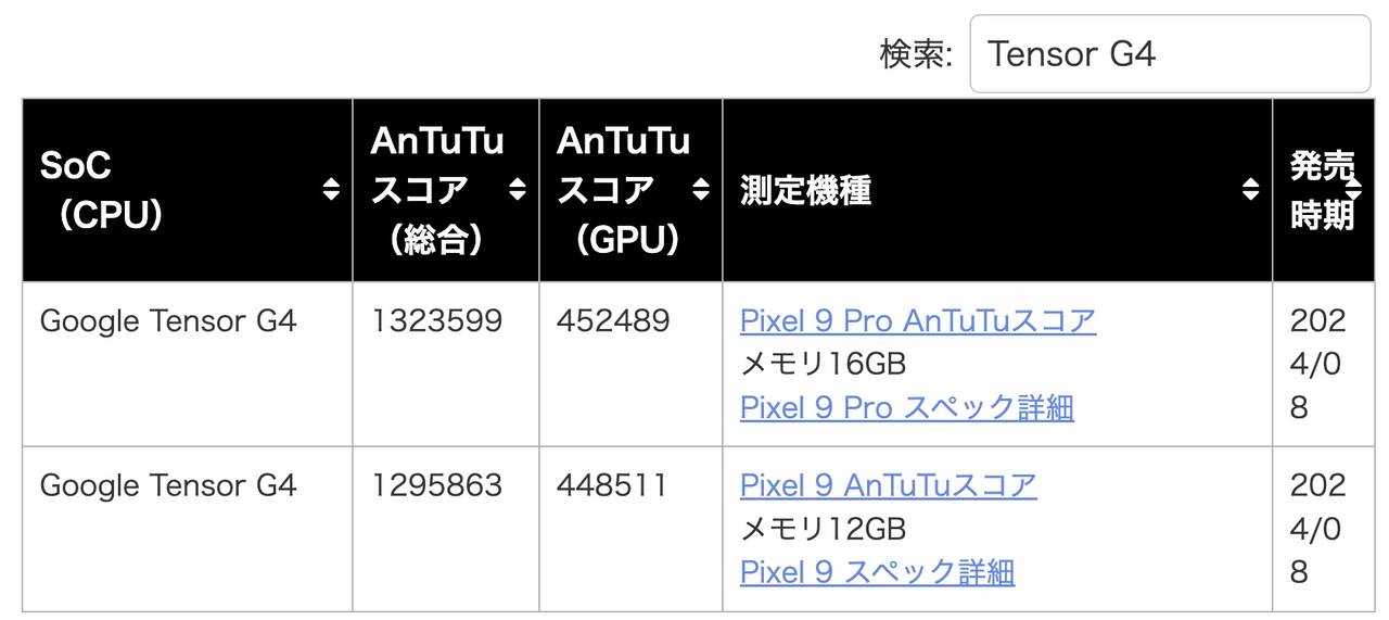 | 備考 | Pixelシリーズ Pixel 9 Pixel 9a Pixel 9 Pro Pixel 9 Pro XL Pixel 9 Pro Fold |
