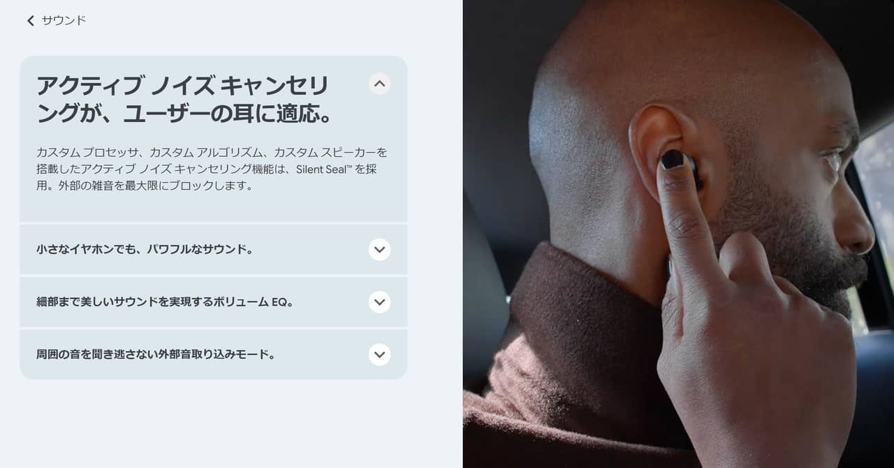 - 耳に最適化する「Silent Seal」でANCの効果を最大化