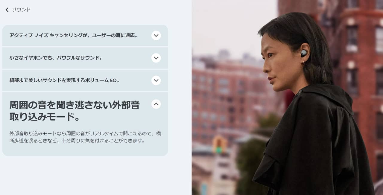 ▼外音取り込みにも対応!この手のカナルタイプイヤホンは没入感に優れる反面外の音が聞こえにくいため会話しにくくなったり交通に気を使う弱点がありましたが、Pixel Buds Proは外の音も取り込んでくれるので周りの音も気づきやすいのが魅力。↓