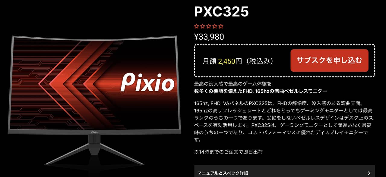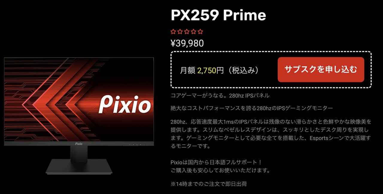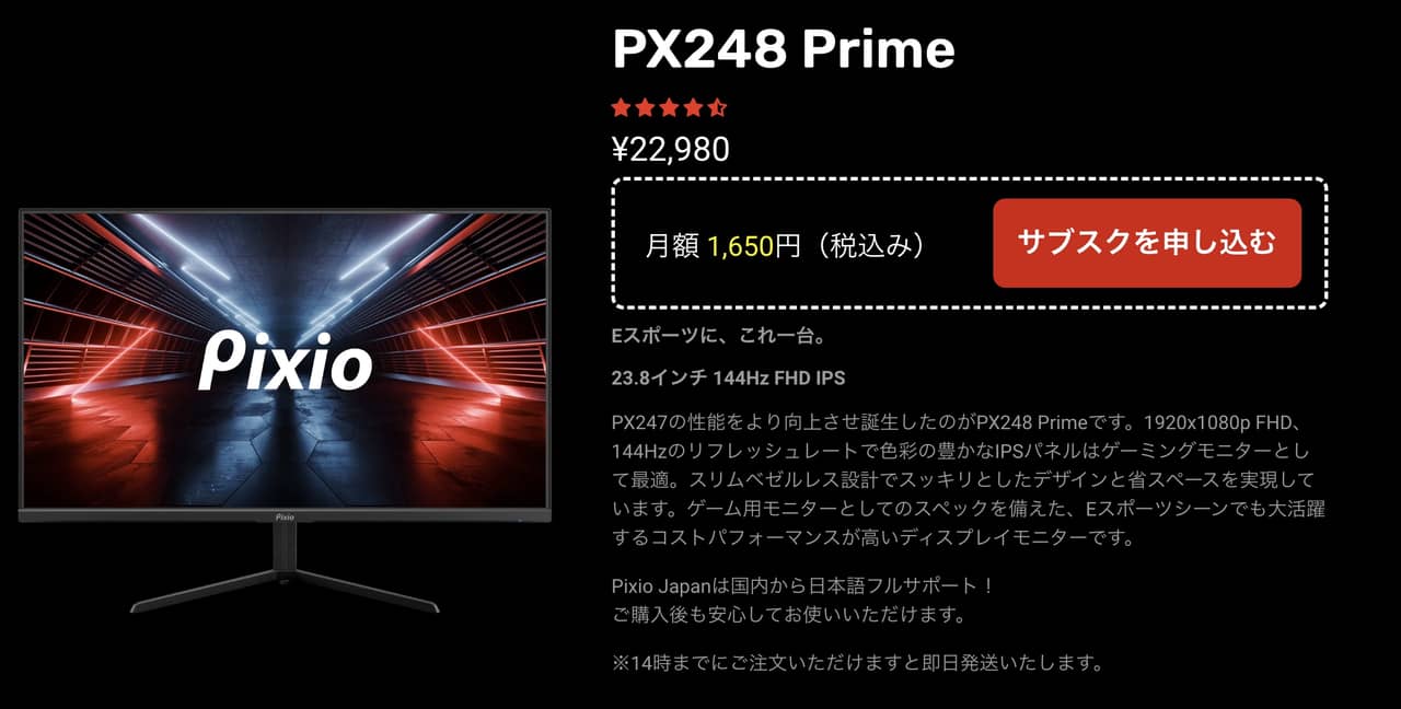 Pixioがゲーミングディスプレイのサブスク開始!月額1,650円から