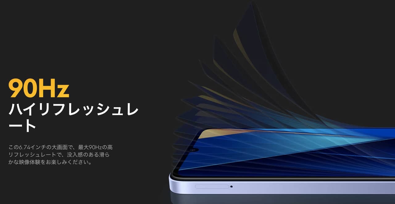 - 6.74型HD+の90Hzディスプレイ