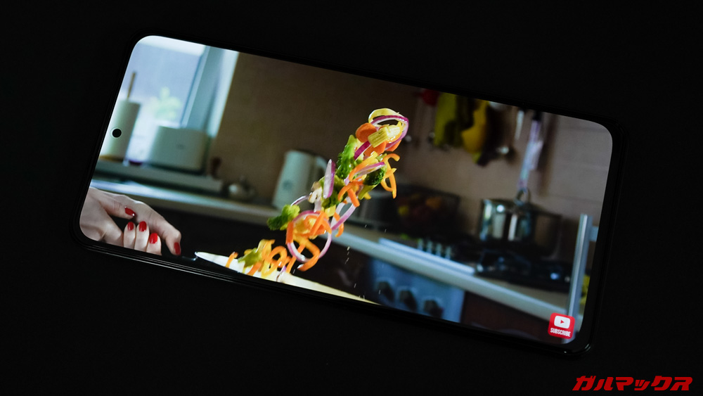 ディスプレイは液晶ですが、滑らかな120Hzのリフレッシュレートに対応。著作権コンテンツのWidevine L1に対応しているので、NetflixやAmazonプライムビデオも高画質で視聴OK。スピーカーもステレオなので動画コンテンツと相性良しです。