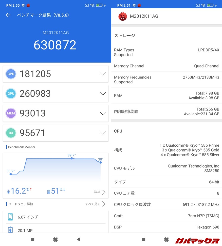▼Snapdragon 870のAnTuTuはこんな感じ。非常に高い性能を持っています。↓