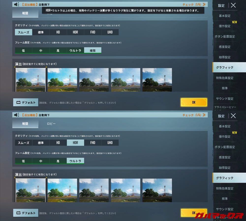 ▼ゲーム性能も高いのでPUBGモバイルも、「スムーズ+極限」で遊べます。↓
