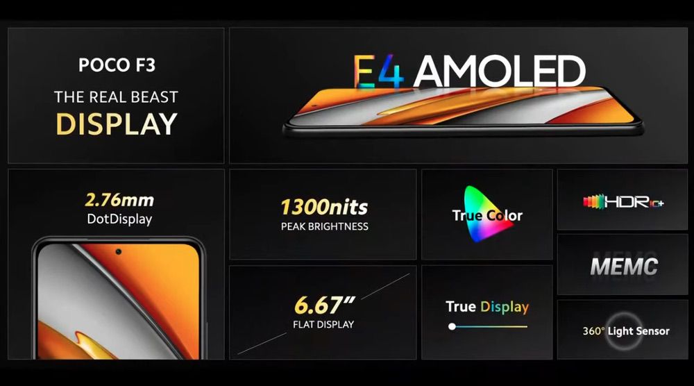 POCO F3のディスプレイは液晶ではなく有機ELを採用!背面からバックライトを当てる液晶とは異なりドットが自発光するので黒は消灯となり真の黒色を表現できるので、その美しさから高価格なテレビでも採用されているんです!