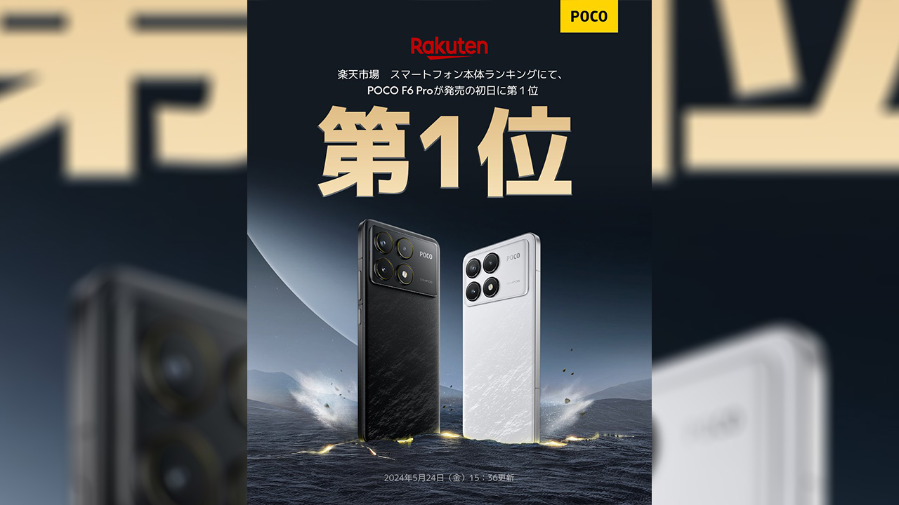 POCO F6 Proが発売初日で楽天市場のスマートフォン本体ランキング1位を獲得!