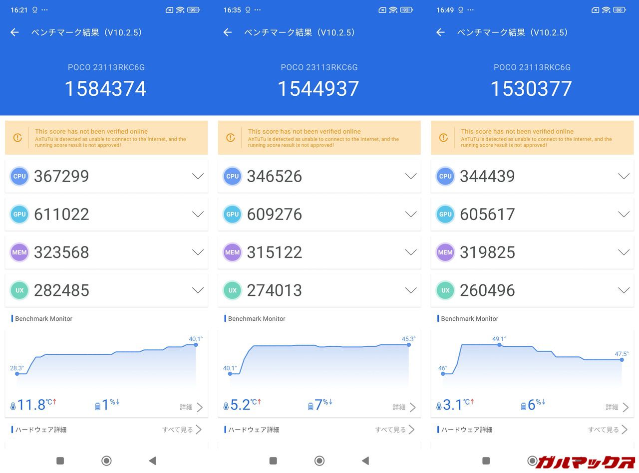 ▼試しにバランスモードでAnTuTuを3回走らせてみたけど動作も安定!ちなみにパフォーマンスモードだと160万点超えてました。(スクショは上のベンチマーク結果に貼ってます)↓