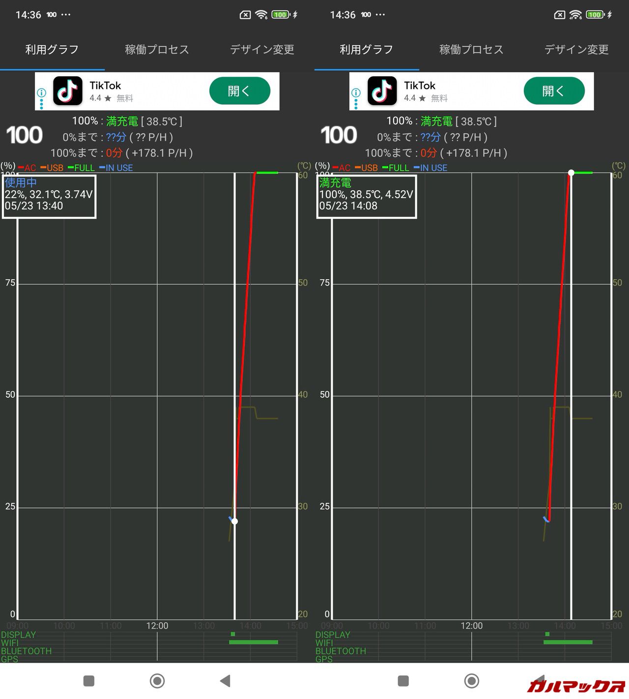 ▼実際の速度はこんな感じ!残量20%くらいなら30分かからず満充電。色々制御されてこれだから機能からブーストをオンにするともっと早くなる!でもデフォルトのこれで十分だなぁ。↓