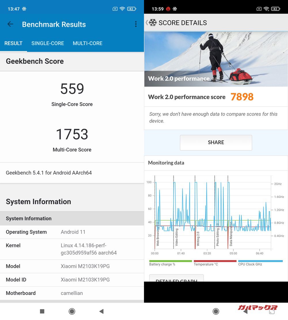 POCO M3 Pro 5Gの処理性能・実機ベンチマークスコア