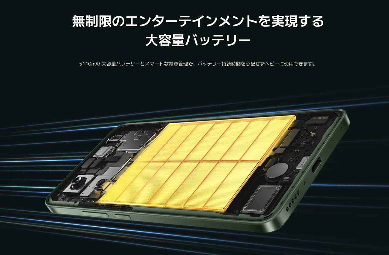 ▼バッテリー容量は5,110mAhを搭載!最近は5,500mAhを超えるモデルもちらほら出てきたので超大容量ってわけではないですが、標準的な搭載量といったところ。↓
