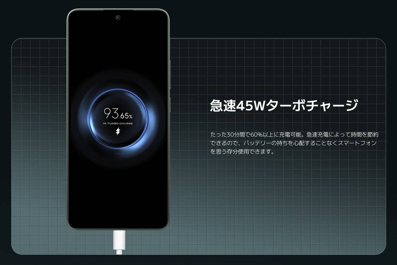 ▼充電は45Wのターボチャージに対応!この価格帯で考えると相当速い規格!30分で60%以上も充電できるので充電忘れて寝落ちしても何とかなりそう。↓