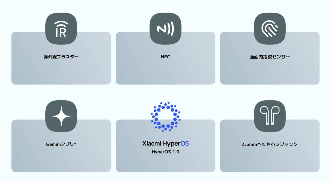 OSはXiaomi HyperOS 1.0を搭載。今だと2まで出ているはずなのでアップデートされるのかな?このあたりはちょっと気になるなぁ。