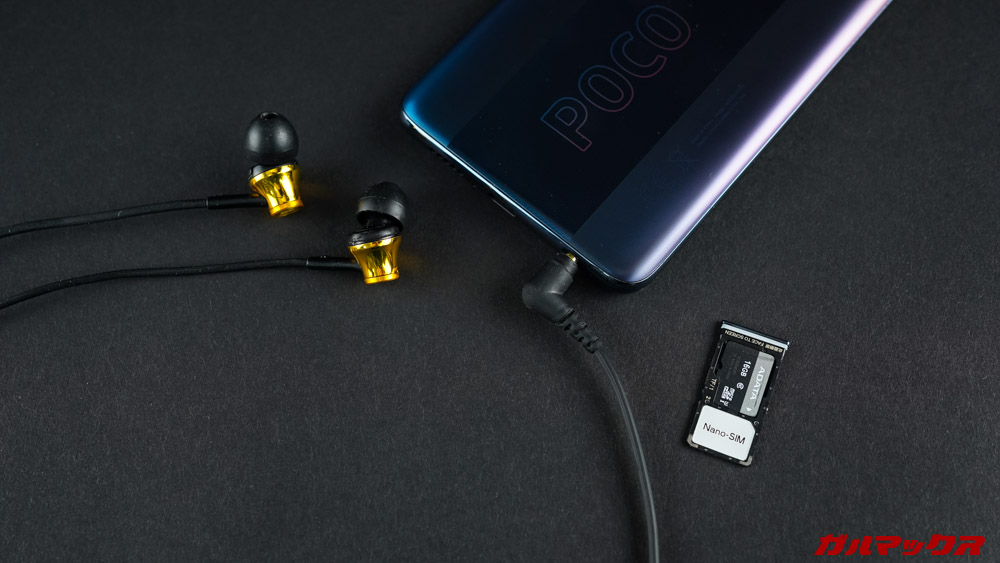 他のハイエンドスマホでは絶滅している「3.5mmイヤホンジャック」と「MicroSDスロット」を両方搭載しているのは、POCO X3 Proで一番の魅力といっても過言じゃあないでしょう。
