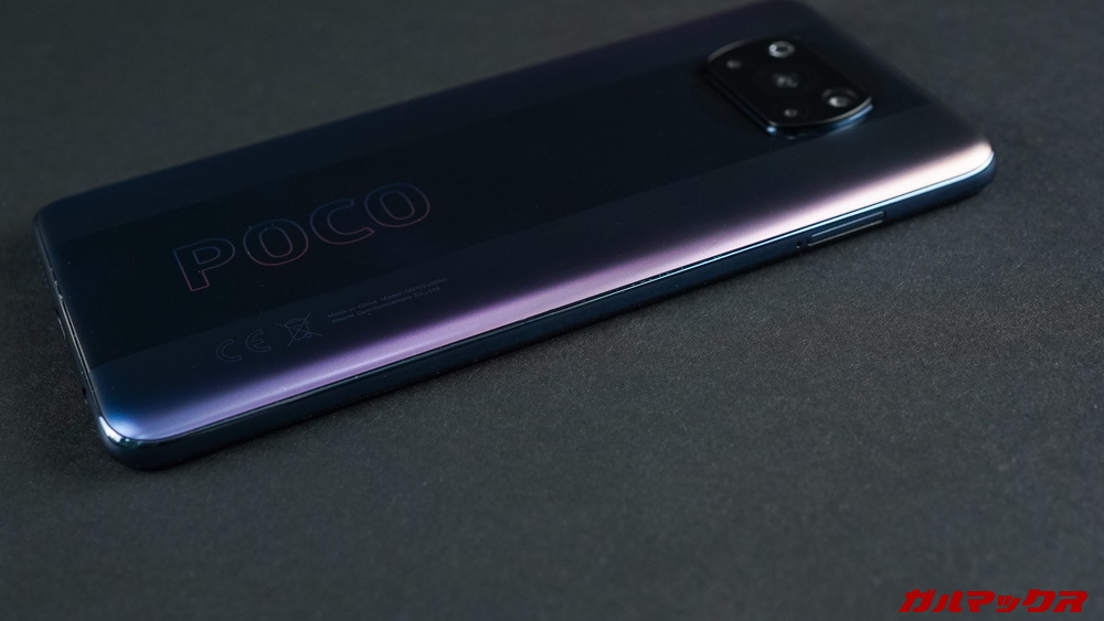POCO X3 Proはこの手の海外スマホでは珍しい、IP53の防滴規格を取得しています!IP53は生活防水レベルであり、たとえば出先で風が強くて砂が飛んできても、雨に振られても壊れにくい…というわけです(`・ω・´)。
