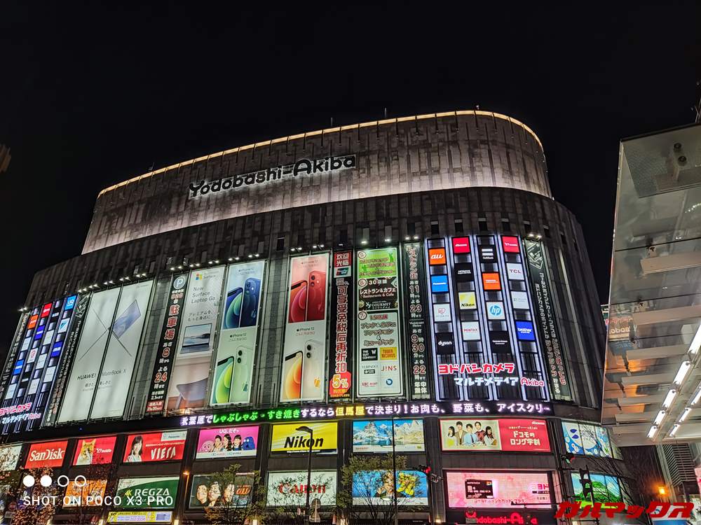 ▼POCO X3 Proの夜景撮影性能はかなり高く、ハイエンドスマホに恥じないぐらいにきれいな写真が撮れました!動く電光板もしっかり捉えられています。左がPOCO X3 Pro、右がiPhone 12 Pro Maxです。↓