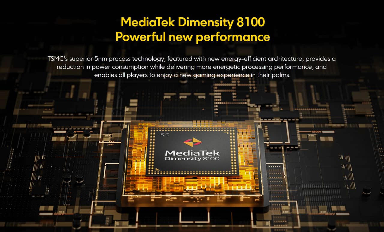 ▼Dimensity 8100を搭載しており非常に高スペック!AnTuTuスコアは公式発表で約82万点をマーク!ゲームもサクサク動きそうなハイスペック!↓